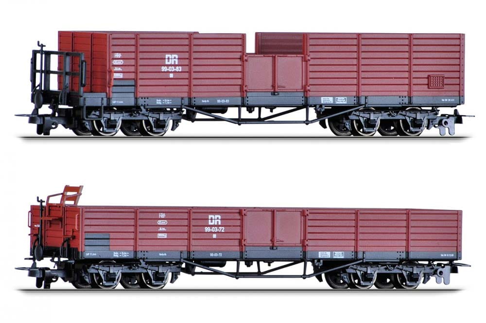 Zestaw dwóch czteroosiowych wagonów węglarek typu 00 w zarządzie Kolei Niemieckich DR