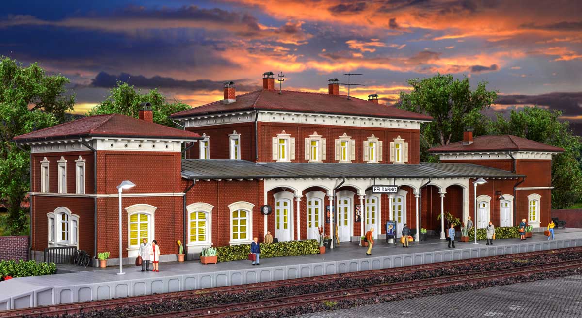 Stacja Feldafing znajduje się na linii Starnberg - Tutzing - Peißenberg, która została otwarta w lipcu 1865 roku. W tym czasie powstał również dworzec kolejowy. Został zbudowany z kamieni, które król Maksym II wybrał na swój zamek. Feldafing służył niegdyś austriackiej cesarzowej jako baza wypadowa na letnie pobyty nad jeziorem Starnberg. Dworzec został zaprojektowany jako prawdziwy budynek recepcyjny Jej Cesarskiej Wysokości. Jego wyjątkowy styl architektoniczny można dziś znaleźć na całym świecie. Doskonały dla projektantów dioram, którzy kochają motywy historyczne.