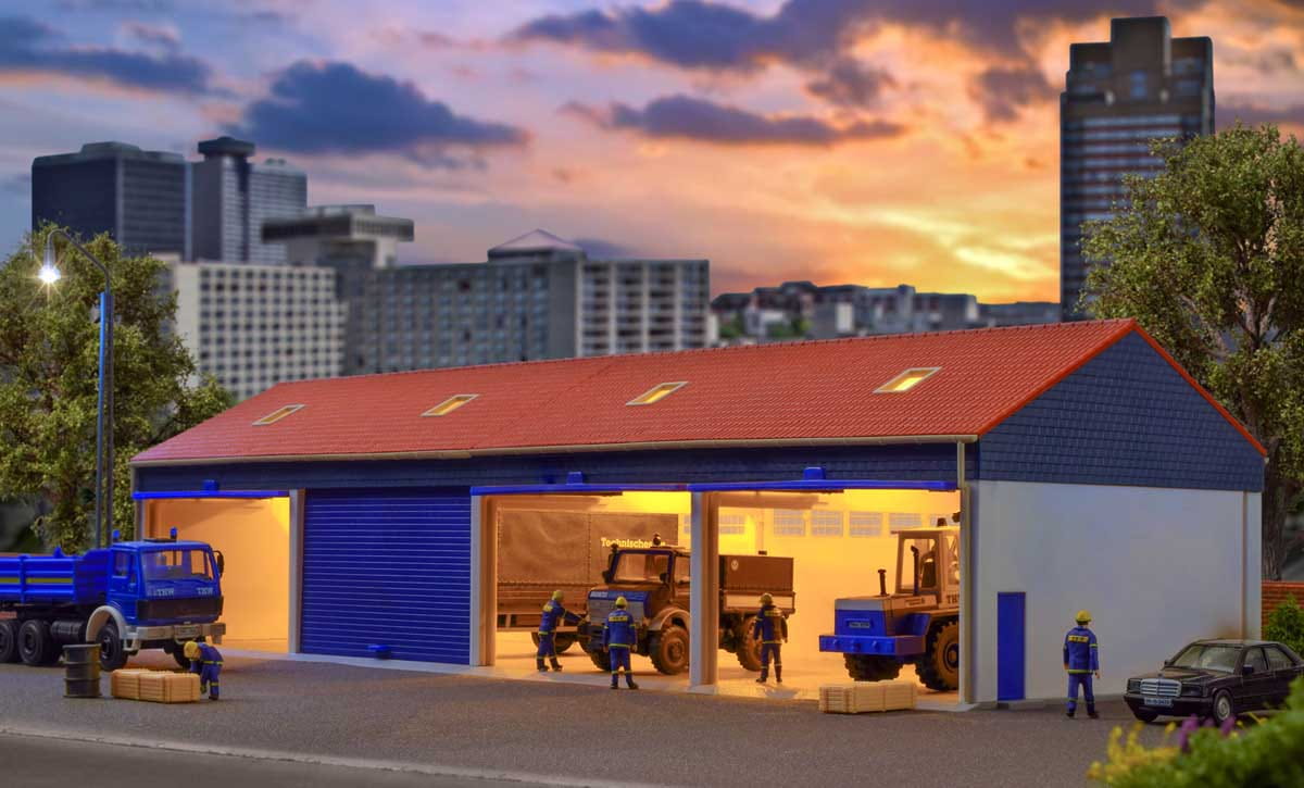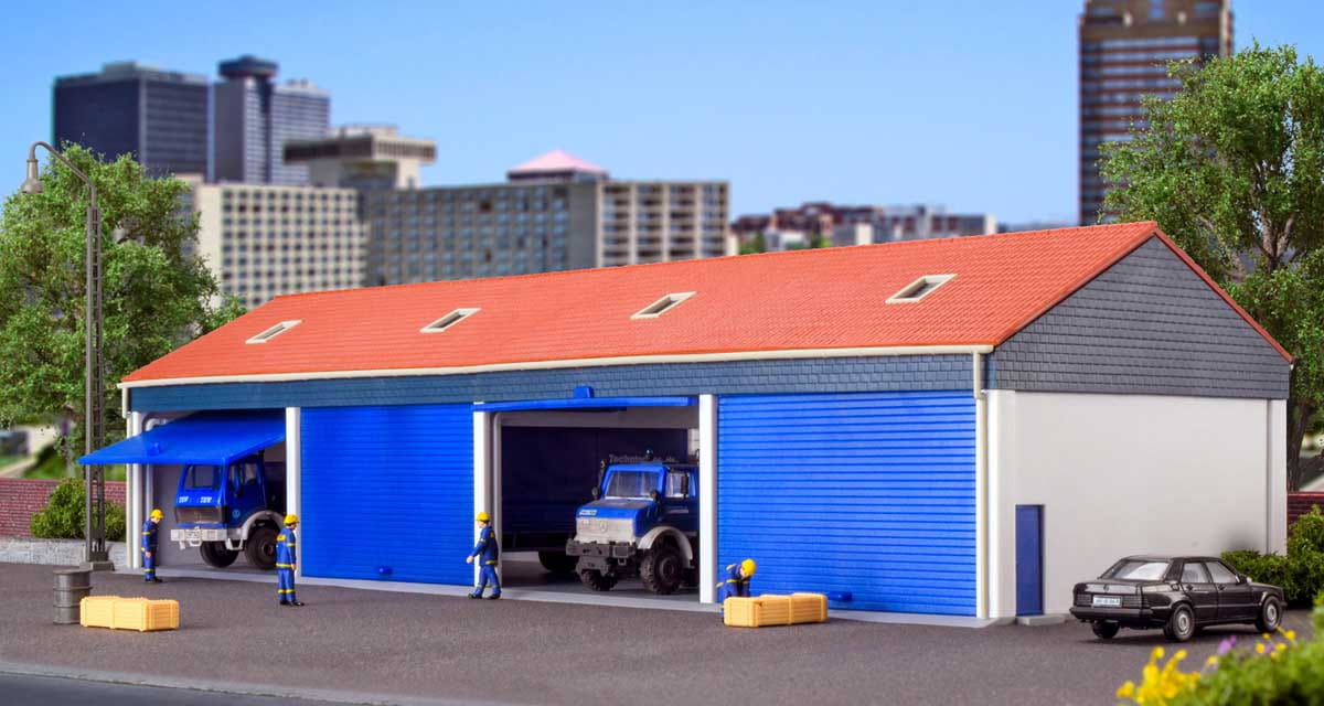 Garaż na 4 ciężarówki, skala H0, Kibri 38136