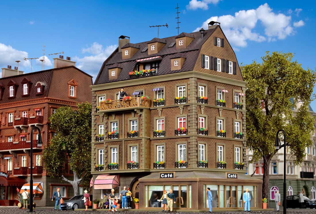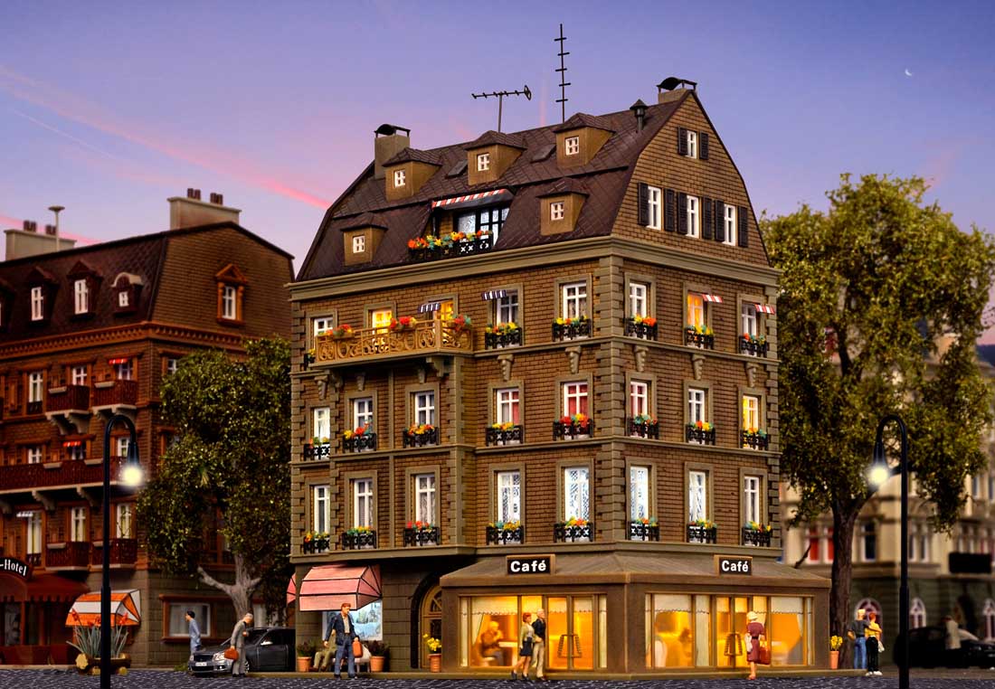 Kamienica z kawiarnią i z oświetleniem skala H0, Vollmer 43783
