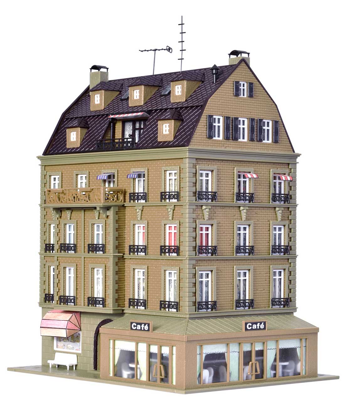 Kamienica z kawiarnią wyposażeniem oraz z oświetleniem w skali H0 - 1:87