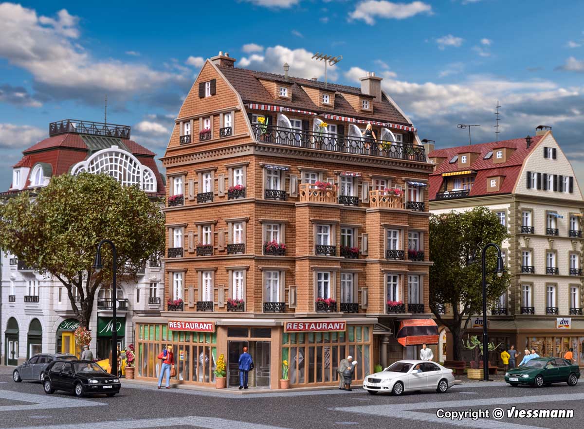 Kamienica z restauracją i oświetleniem, skala H0, Vollmer 43781