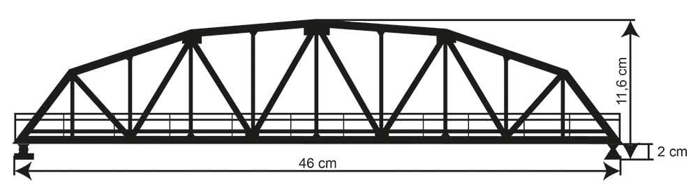 Długi stalowy 1-torowy most kratownicowy (kratownica nad torem) do skali H0 - 1:87