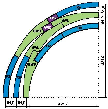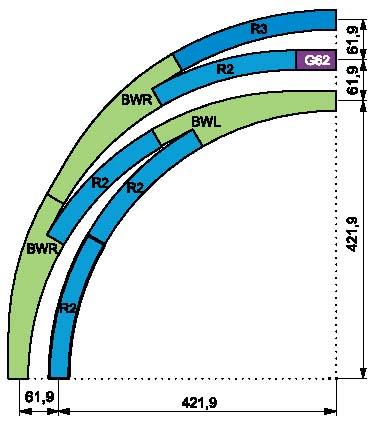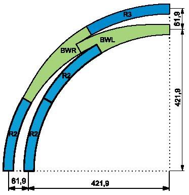 Tor łukowy R2 = 422 mm / 30 stopni