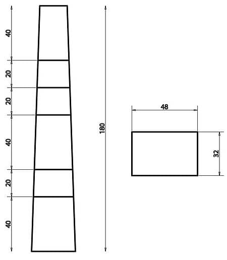 Filary posiadają maksymalna wysokość 180 mm, jednak można je obniżyć (przez obcięcie) do wysokości: 140, 120, 80, 60 i 40 mm