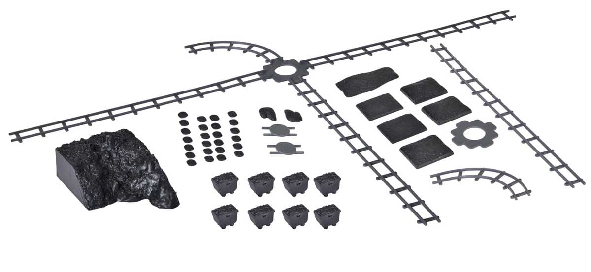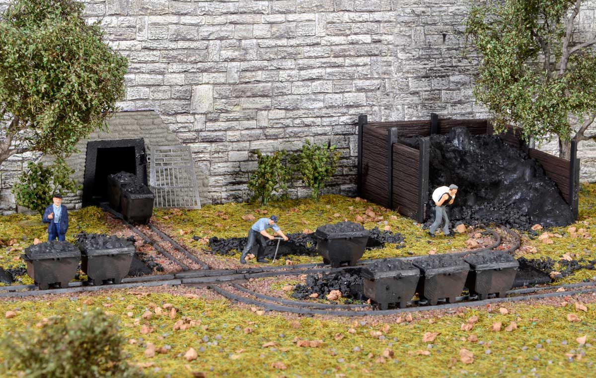 Zestaw wagoników kopalnianych na węgiel wraz z torami do skali H0 - 1:87